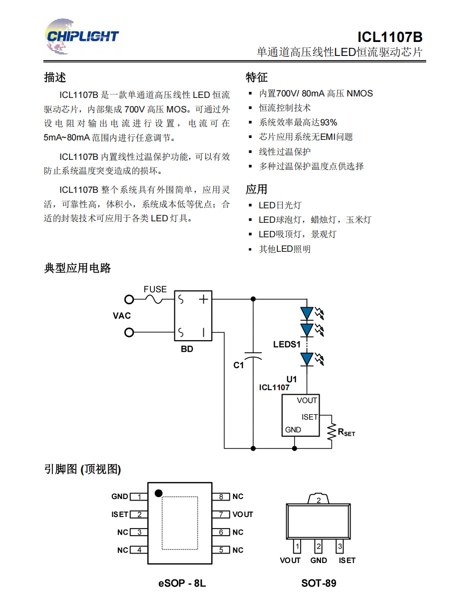 ICL1107B 是一款單通道高壓線性 LED 恒流